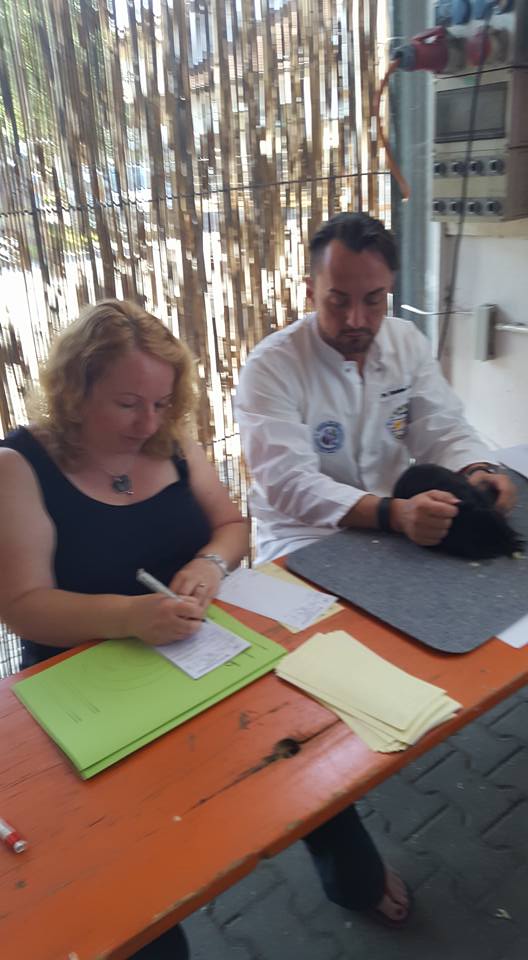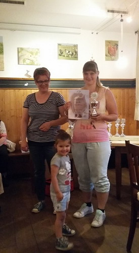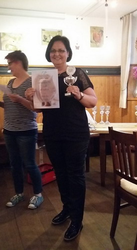 1. Platz „Beste Rosette“Yoko v. d. Kristallschweinchen, Rosette schwarz-rot-weiß (154)Anke & Annika Henkel |